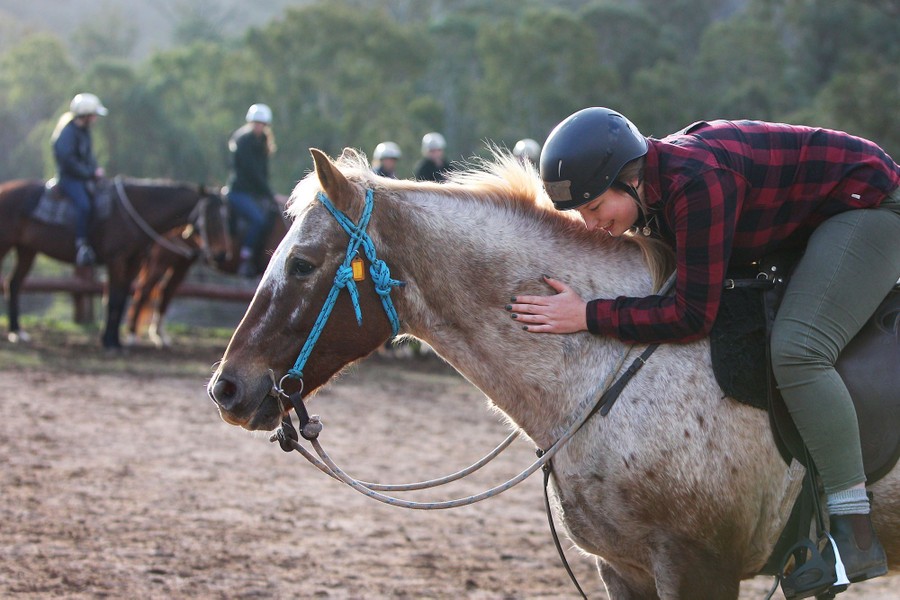 Read moreThe jillaroo student Rebecca Hatton leans forward to pat her horse following a riding exercise at Leconfield in Mulla Creek, Australia, on June 7, 2019. Leconfield Jackaroo and Jillaroo School is situated among the hills of the Great Dividing Range along Mulla Creek. Led by the horseman and station owner Tim Skerrett, the fourth-generation family property is an hour's drive from Tamworth. The colloquial terms Jackaroo (Cowboy) and Jillaroo (Cowgirl) came to life in the 19th century and remain synonymous with station life in the Australian landscape. Today the lifestyle attracts young men and women from all over the world wanting to experience farmwork in the Australian outback. During the five-day course, up to 15 students at a time are taught natural horsemanship, mustering, shearing, fence building, lassoing, pasture-improvement techniques, branding, yarding, and general horse and stock care. #