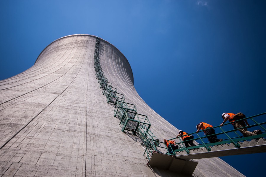 Read moreJournalists climb into the cooling tower of the third and fourth units, still under construction, at the Mochovce nuclear power plant, western Slovakia, on July 2, 2019. #