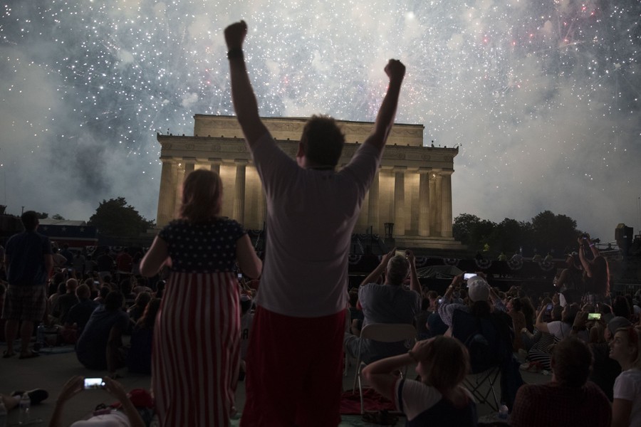 Read moreA fireworks display follows the "Salute to America" ceremony in front of the Lincoln Memorial, on July 4, 2019, in Washington, DC. The presentation featured armored vehicles on display, a flyover by Air Force One, and several flyovers by other military aircraft. #