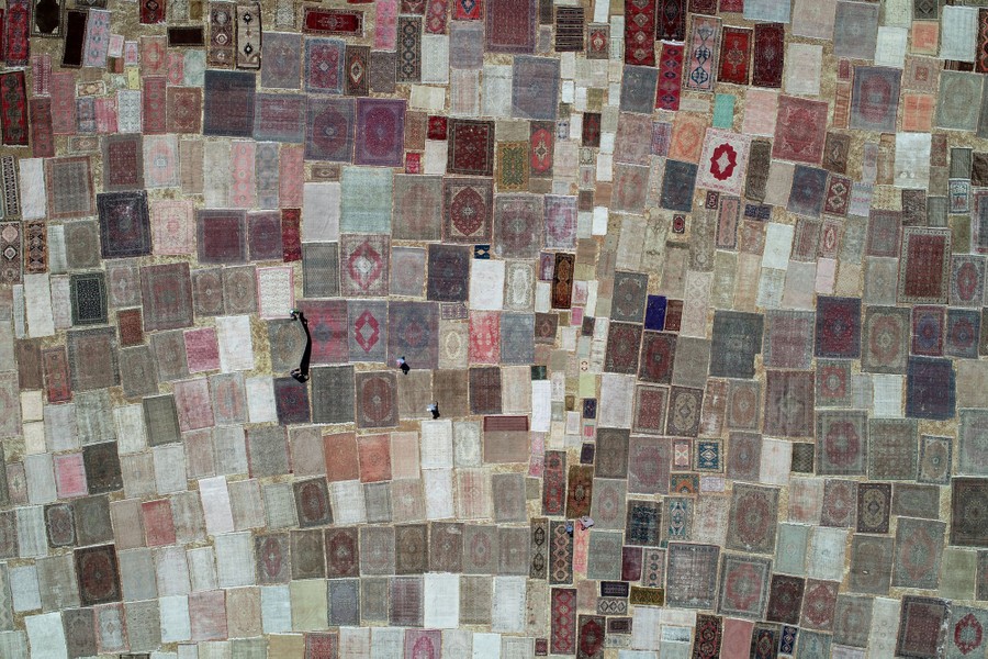 Read moreA drone photo shows thousands of colorful handmade carpets laid under the sun on a field to soften their color in Dosemealti district of Turkey's Southern Antalya province, on July 2, 2019. #