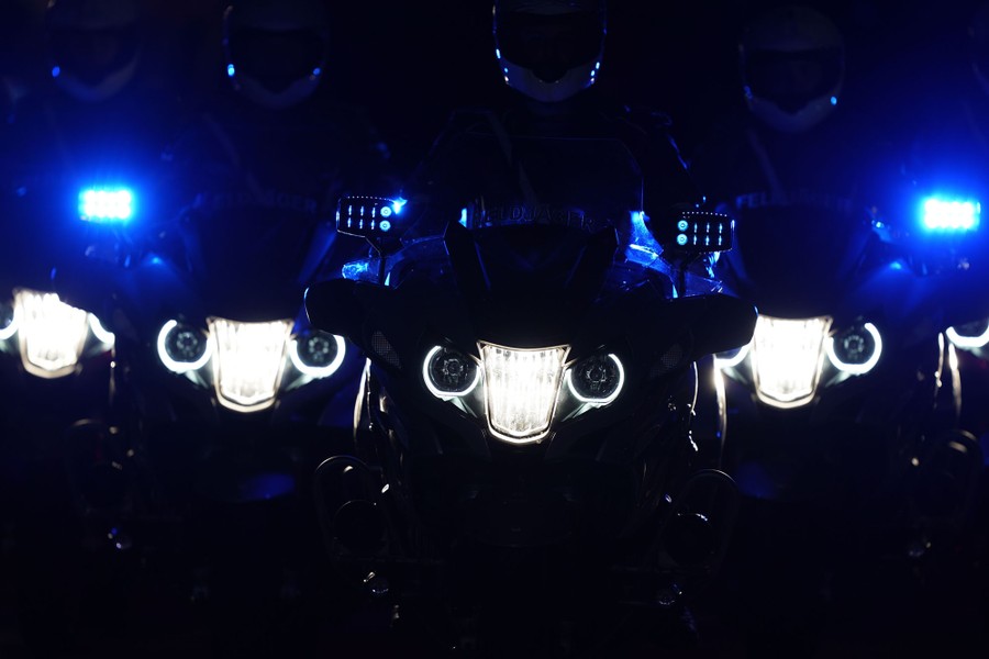 Read moreMembers of the German armed forces on motorbikes take part in a Grand Tattoo (Grosser Zapfenstreich) farewell ceremony for the former defense minister on August 15, 2019, at the defense ministry in Berlin. #