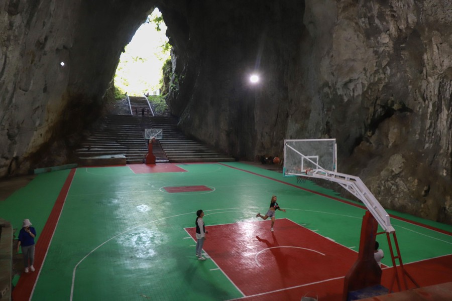 Read moreVillagers play basketball on a court built inside a Karst cave at Xinchun village in Bijie, Guizhou province, China, on August 12, 2019. The court was built inside the cave in order to save arable land in 2018. The cave can accommodate 1,000 people to watch a game. #