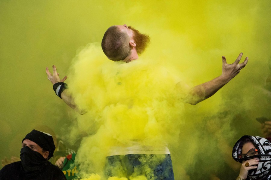 Read moreA Portland Timbers fan celebrates after a Timbers goal during the second half against the Vancouver Whitecaps at Providence Park in Portland, Oregon, on August 10, 2019. #