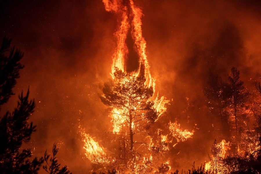 Read moreFlames rise from a forest fire near the village of Makrimalli on the island of Evia, northeast of Athens, Greece, on August 13, 2019. Hundreds of villagers were evacuated on August 13 and the Greek prime minister canceled a vacation as scores of firefighters battled a major wildfire on the country's second-largest island of Evia, authorities said. #