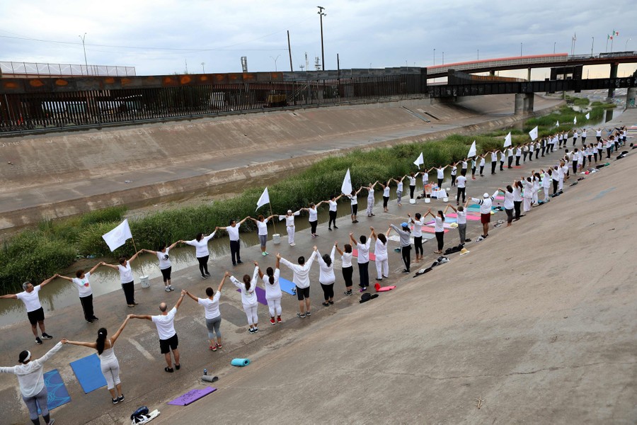 Read morePeople take part in a yoga class near the border wall next to Rio Grande river in the border between El Paso, U.S., and Ciudad Juarez, Mexico, on September 15, 2019. #