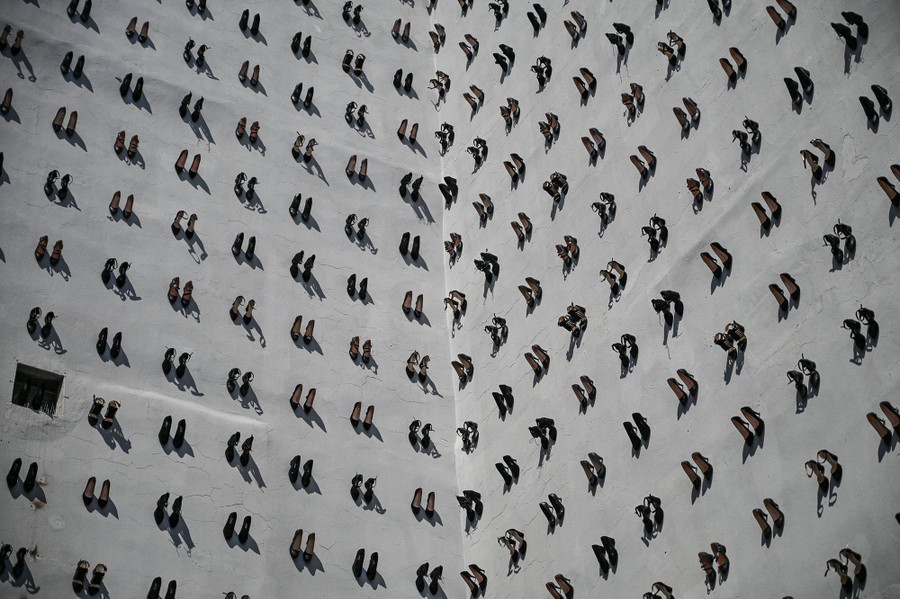 Read moreThis picture taken on September 17, 2019 in Istanbul shows a contemporary art installation by Turkish artist Vahit Tuna in an attempt to raise awareness on women killed by domestic violence by their partners and husbands. Tuna placed 440 pair of women's shoes on the walls of a building to symbolize women killed by their partners and husbands in 2018 in Turkey. #