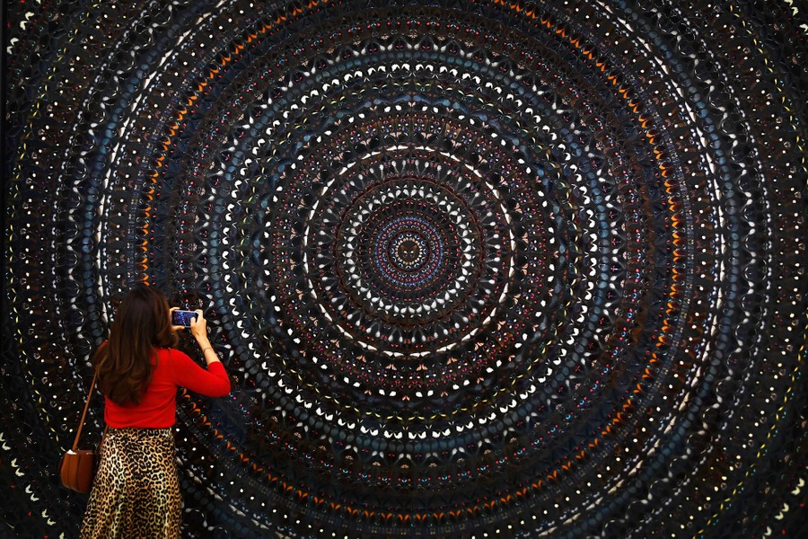 Read moreAn art lover takes a closer look at "The Creator" by Damien Hirst during an exhibition of his new work entitled "Mandalas" at the White Cube in London, England, on September 19, 2019. #