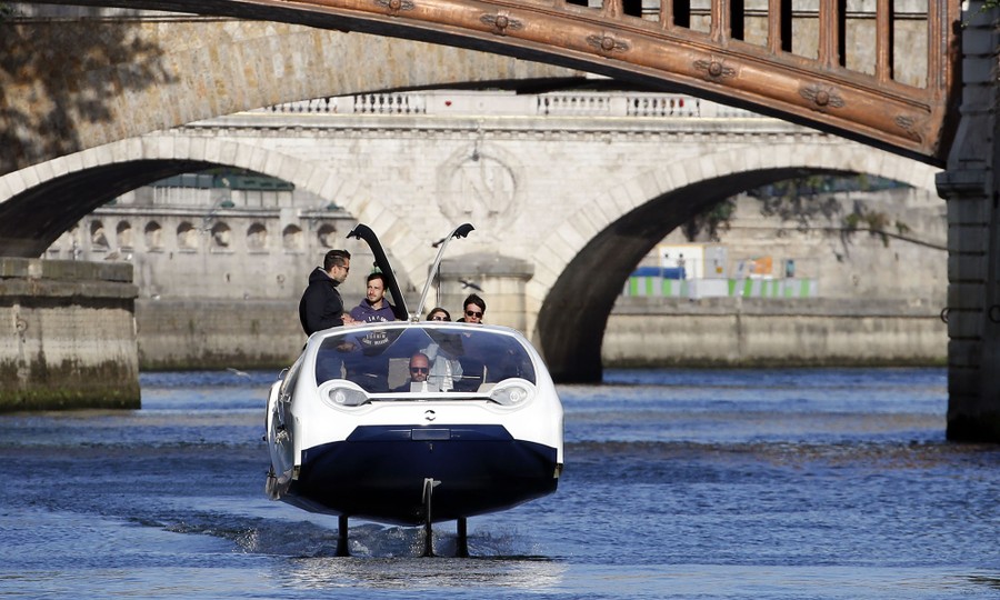 Read moreThe SeaBubbles water taxi glides along the surface of the Seine River in front of Notre-Dame, during a test by the SeaBubbles company in Paris, France, on September 19, 2019. If testing is successful, the electric hydrofoil boat could act as a water taxi in Paris and in other large cities next spring. #