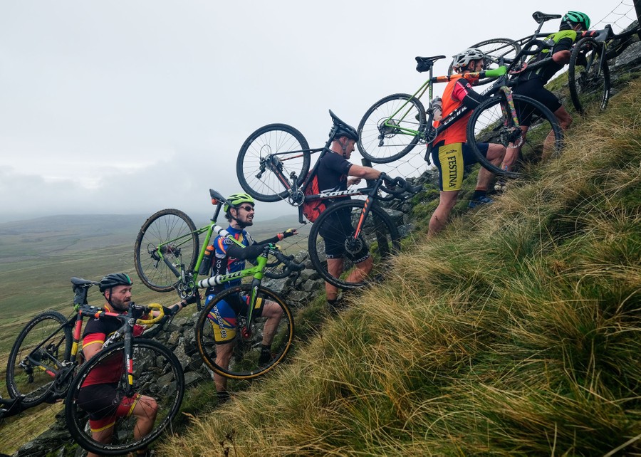 Read moreCompetitors tackle the brutal climb up Simons Fell as they ascend to the summit of Ingleborough during the 57th Annual Yorkshire 3 Peaks Cyclocross Challenge on September 15, 2019, in Settle, England. The race was born in 1959 when a Yorkshire schoolboy, Kevin Watson rode, pushed and carried his bicycle 30 miles to the summit cairns of Whernside (2,419ft), Ingleborough (2,373ft) and Penyghent (2,273ft). #