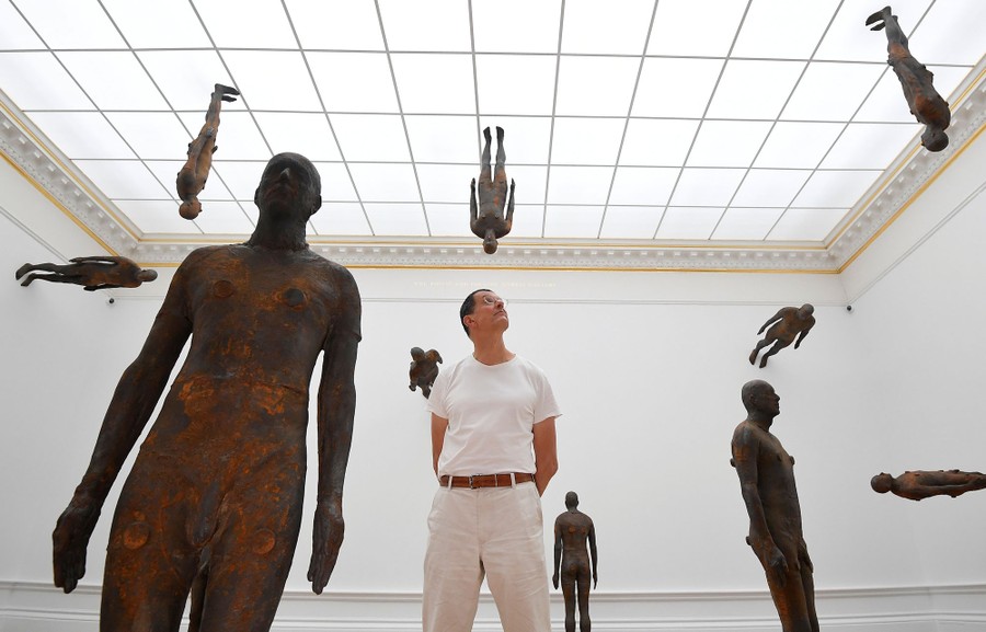 Read moreArtist Antony Gormley poses between figures entitled "Lost Horizon I" which forms part of the British sculptor's exhibition of new and existing works at the Royal Academy of Arts in London, Britain, September 16, 2019. #
