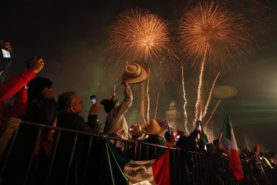 Read moreRevelers celebrate as fireworks explode over the Metropolitan Cathedral after President Andres Manuel Lopez Obrador gave the annual independence shout from the balcony of the National Palace to kick off Independence Day celebrations in Mexico City on September 15, 2019. #