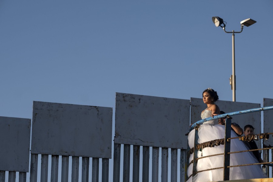 Read moreA girl celebrating her quinceañera (15th birthday) stands for her portrait to be taken near the U.S.-Mexico border fence in Playas de Tijuana on September 14, 2019, in Baja California state, Mexico. Playas de Tijuana is one of the favorite spots for quinceañeras and newlyweds to have their portrait taken. #