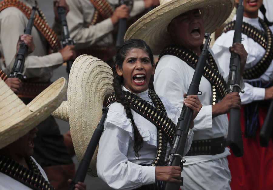 Read moreA woman in a "Soldadera" soldier costume participates in the Independence Day military parade in the capital's main plaza, the Zocalo, in Mexico City on September 16, 2019. #