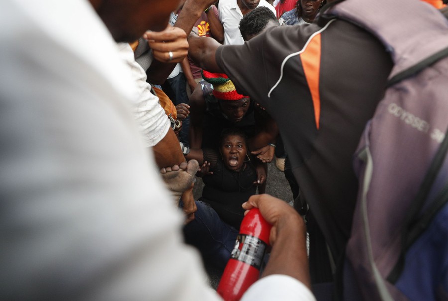 Read moreAn injured woman shouts as she is lifted by protesters to a waiting ambulance, after at least three people were struck by a truck that was unable to brake on a hill and plowed into protesters heading home from a demonstration in Petion-Ville, Port-au-Prince, Haiti, on October 20, 2019. Anger over corruption, inflation and scarcity of basic goods, including fuel, has led to more than a month of demonstrations that have paralyzed the country as protesters demand the resignation of President Jovenel Moïse. #