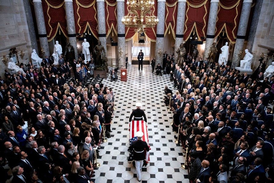 Read moreThe flag-draped casket of late U.S. Representative Elijah Cummings is carried through National Statuary Hall during a memorial service at the U.S. Capitol in Washington, D.C., on October 24, 2019. #