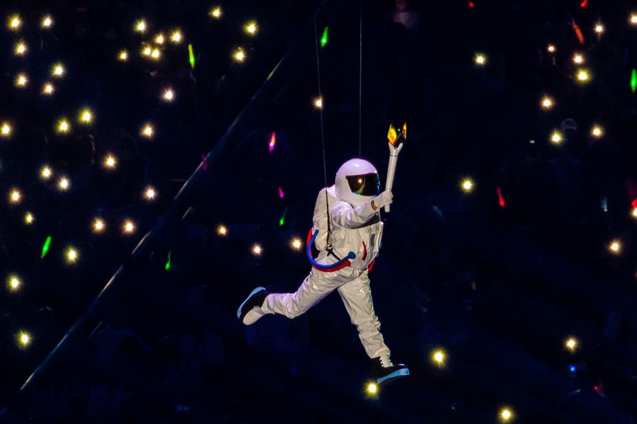 Read moreA performer dressed as an astronaut holds the torch during the opening ceremony of the 7th International Military Sports Council Military World Games at the Wuhan Sports Center in Wuhan, Hubei province, China, on October 18, 2019. #