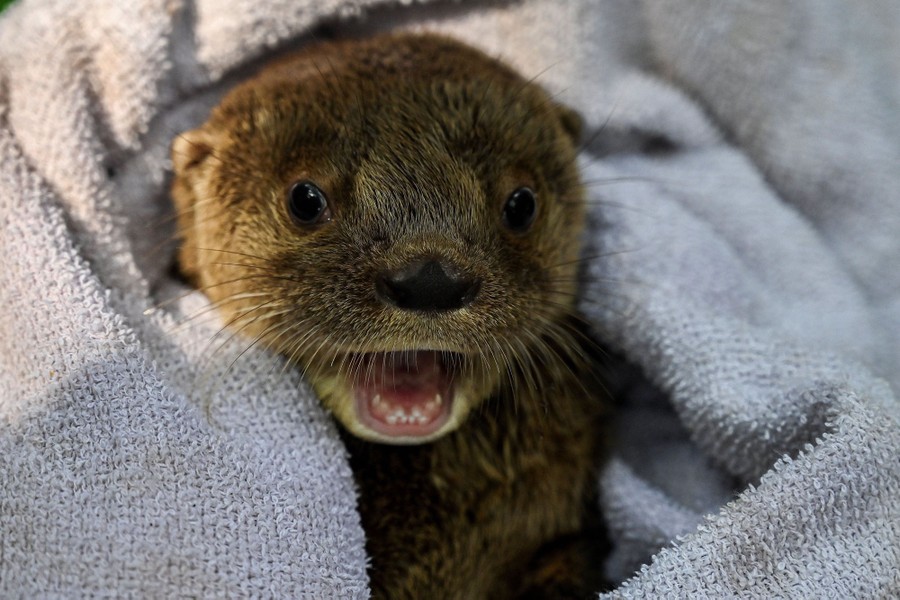Read moreA 6-week-old river otter reacts at the Animal Welfare Unit of the Zoo in Cali, Colombia, on October 22, 2019. The baby otter was found abandoned and brought to the Cali Zoo. According to the International Union for Conservation of Nature, river otters are in danger of extinction due to mining, agriculture, river pollution, and housing construction in their habitat. #