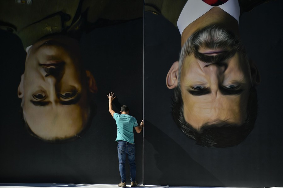 Read moreA man installs upside-down giant paintings of late Spanish dictator Francisco Franco, left, and Spanish King Felipe VI, ahead of a protest by Basque pro-independence activists in support of Catalonia's independence movement, following Spain's conviction of Catalan separatist leaders, in Bilbao, Spain, on October 15, 2019. #