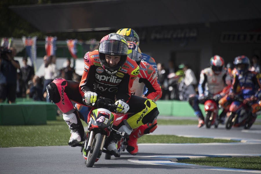 Read moreAleix Espargaro of Spain and Aprilia Racing Team Gresini leads the field during the "Minimoto race in Mobi Park" pre-event, during the MotoGP of Japan Press Conference at Twin Ring Motegi on October 17, 2019, in Motegi, Japan. #