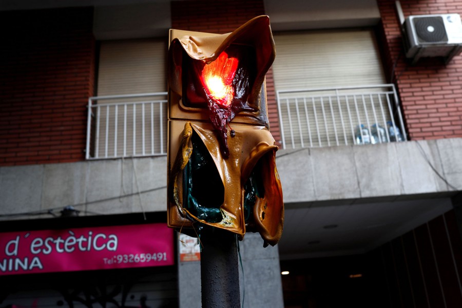 Read moreMelted traffic lights are seen after clashes with separatist demonstrators followed a verdict in a trial over a banned independence referendum in Barcelona, Spain, on October 17, 2019. #