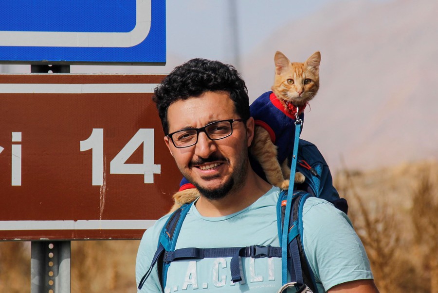 Read moreA cat that was found in the street when he was a kitten and raised by his owners is seen in eastern Tunceli province, Turkey, on October 12, 2019. Hamza Mutlu and Ozge Kubra Mace, nature-lovers living in Artvin, travel around Turkey, hitchhiking with their cat, Azman. #