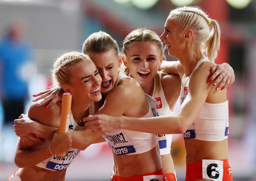 Read morePoland's Iga Baumgart-Witan, Patrycja Wyciszkiewicz, Malgorzata Holub-Kowalik, and Justyna Swiety-Ersetic celebrate winning silver in the Women's 4x400 Meter Relay Final at the World Athletics Championships in Doha, Qatar, on October 6, 2019. #