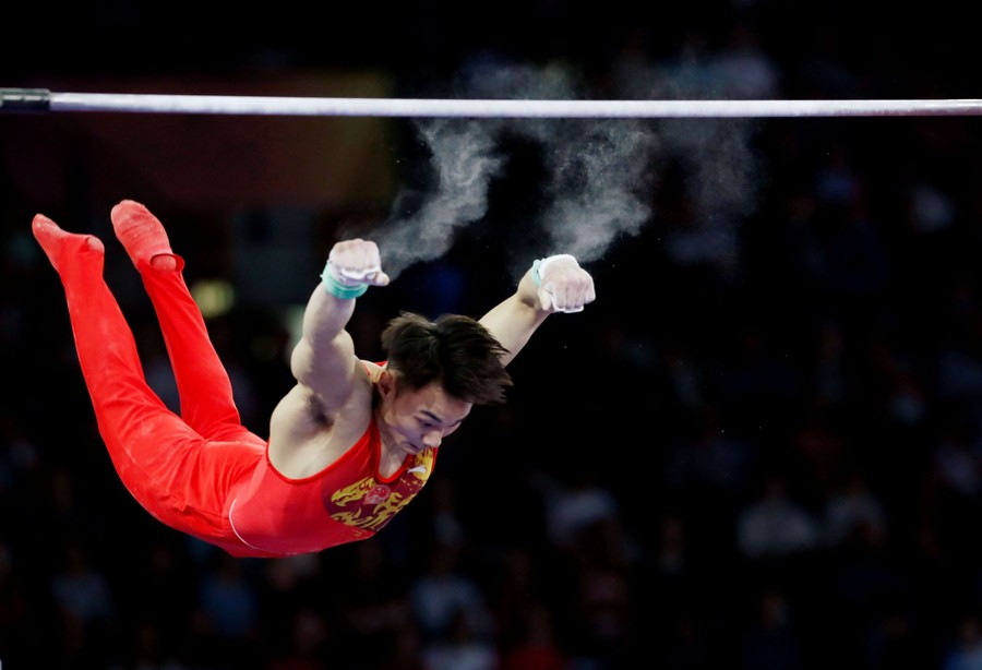 Read moreChina's Sun Wei in action during the men's team final for the horizontal bar at the 2019 World Artistic Gymnastics Championships in Hanns-Martin-Schleyer-Halle, Stuttgart, Germany, on October 9, 2019. #