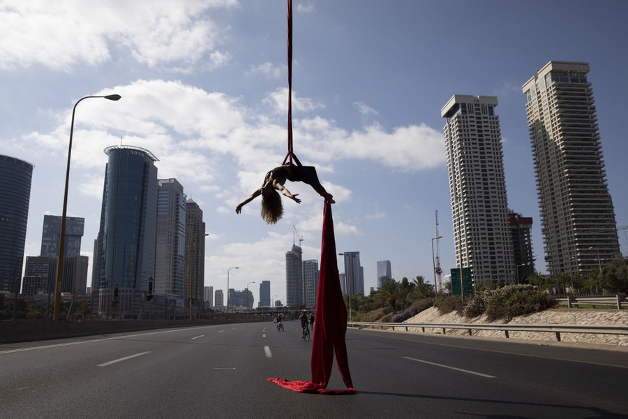 Read moreThe Israeli acrobat Tel Karassin performs on a car-free highway during the Jewish holiday of Yom Kippur in Tel Aviv, Israel, on October 9, 2019. Israelis marked Yom Kippur, or Day of Atonement, the holiest of Jewish holidays, when observant Jews atone for the sins of the past year and the Israeli nation comes to almost a complete standstill. Many residents take bicycles onto the streets as no traffic is permitted on the roads. #