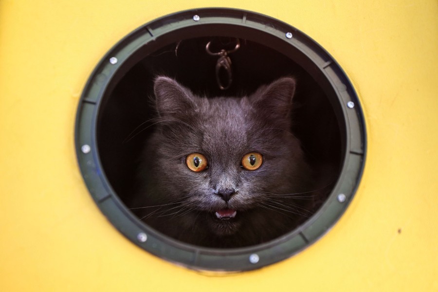 Read moreA cat meows while looking out from its carrier as animals and their owners gather at Our Ladies of Remedies Parish in the Malate area of Manila on October 6, 2019, for an annual pet-blessing ceremony. #
