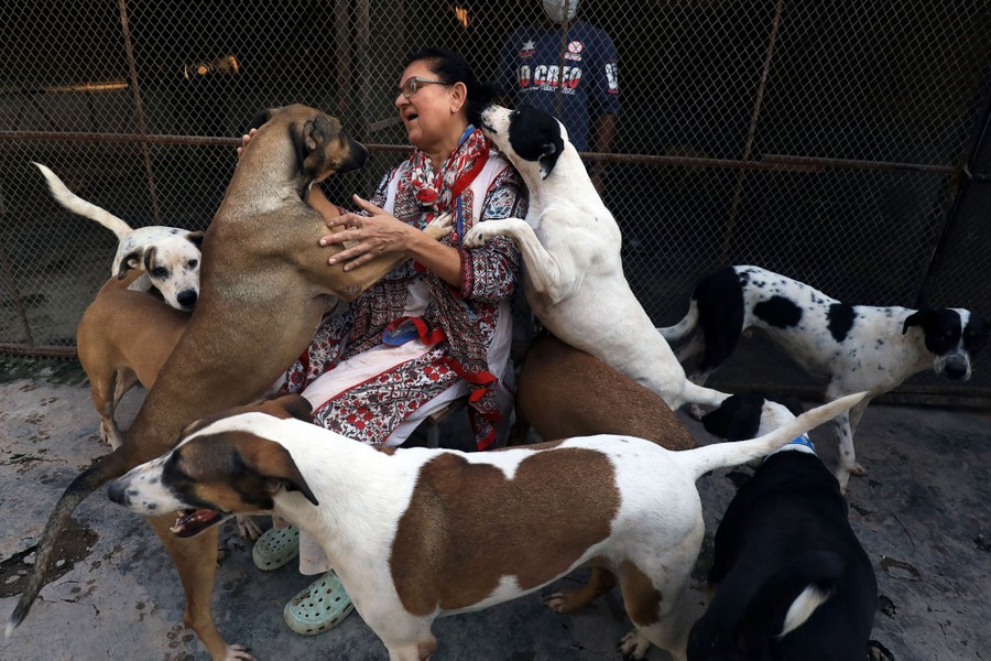 Read moreZeba Masood, an animal-rights activist, sits amid a group of dogs after they were rescued from the streets at the Lucky Animal Protection Shelter, a nonprofit organization providing temporary shelter to stray and abandoned dogs in Peshawar, Pakistan, on October 9, 2019. #