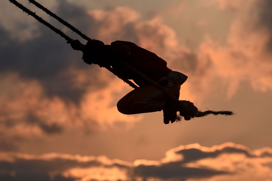 Read moreA youth plays on a swing, popularly known as the "Dashain Ping," during the Hindu festival of Dashain in Changu Naryan on the outskirts of Kathmandu, Nepal, on October 6, 2019. #