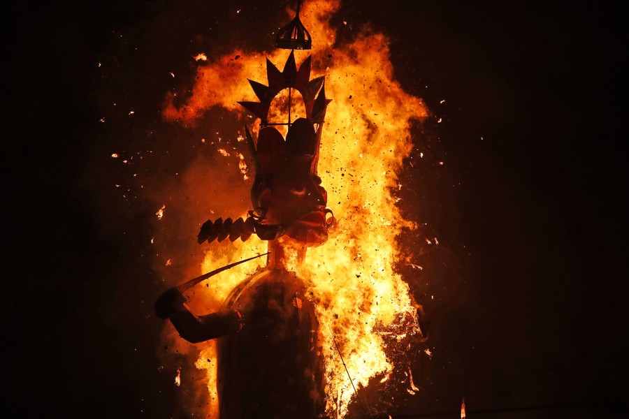 Read moreAn effigy of the mythological demon king Ravana goes up in flames, marking the end of the Dussehra festival in New Delhi, India, on October 8, 2019. Dussehra commemorates the triumph of Lord Rama over the demon king Ravana, marking the victory of good over evil. #