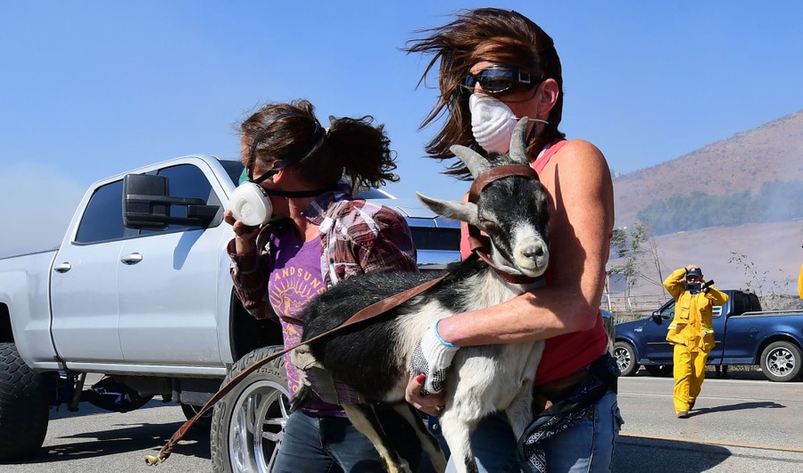 Read moreLaura Horvitz (right) and Robyn Phipps help rescue goats from a ranch near the Reagan Presidential Library during the Easy Fire in Simi Valley, California, on October 30, 2019. #