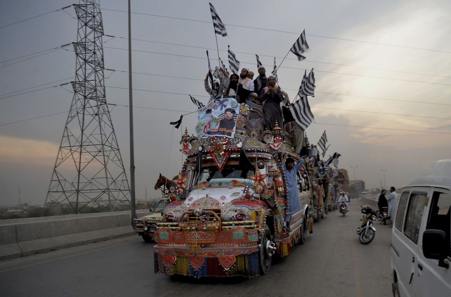 Read moreSupporters of the Pakistani firebrand cleric Maulana Fazlur Rehman, head of the Jamiat Ulema-e-Islam party, leave for Islamabad to participate in an anti-government march, in Peshawar, Pakistan, on October 31, 2019. Thousands of supporters of the ultra-religious political party led by Rehman took part in the anti-government procession headed to Pakistan's capital. #