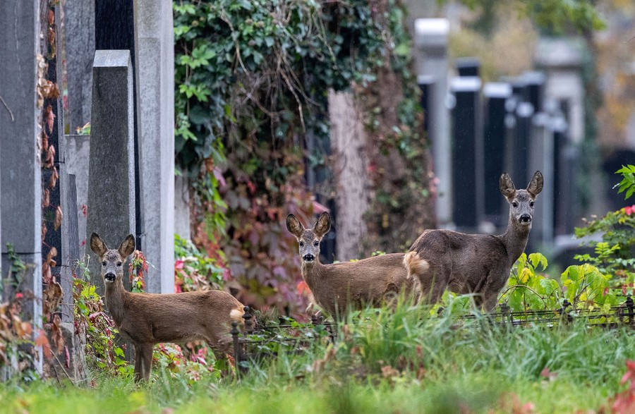 Read moreDeer are seen between tombstones in the old Jewish part of the Zentralfriedhof cemetery on an autumn day ahead of All Saints' Day in Vienna, Austria, on October 30, 2019. #