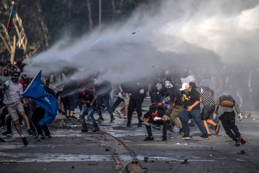Read moreDemonstrators clash with riot police during protests against the government's economic policies, in the surroundings of La Moneda Palace in Santiago, Chile, on October 29, 2019. #