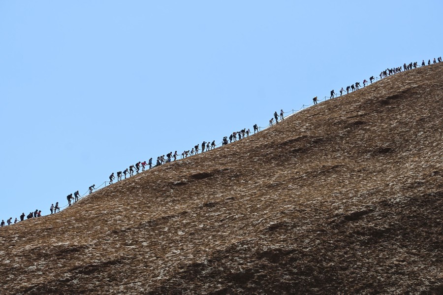 Read moreTourists climb Uluru, formerly known as Ayers Rock, at Uluru-Kata Tjuta National Park in Australia's Northern Territory on October 25, 2019. Friday was the last day people were allowed to climb Uluru. #