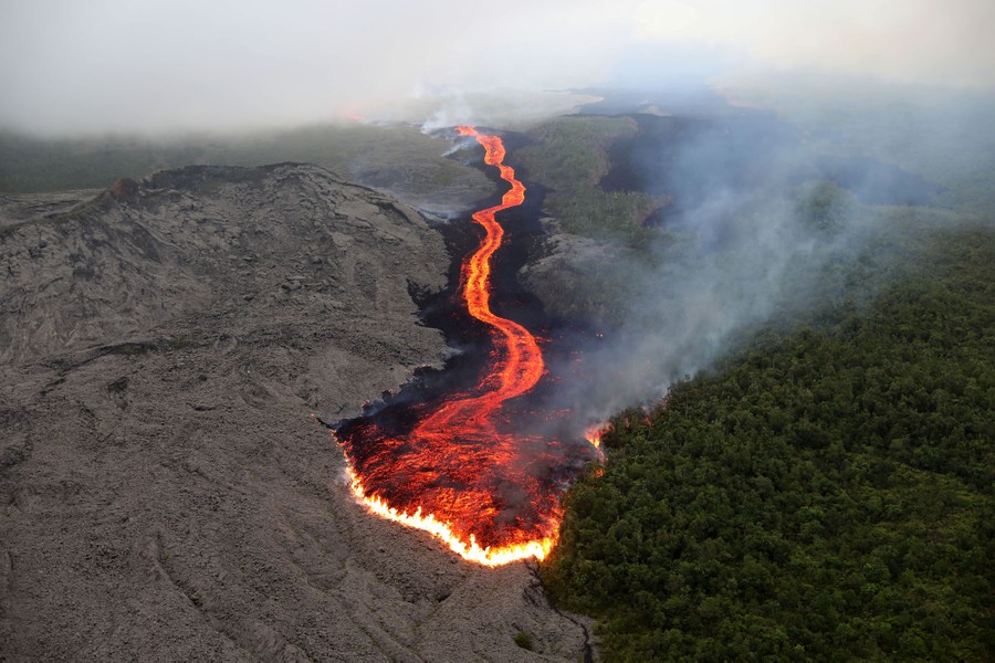 Read moreThis picture taken on October 25, 2019, shows lava from the Piton de la Fournaise ("Peak of the Furnace") volcano flowing toward the Indian Ocean on the island of Réunion. #