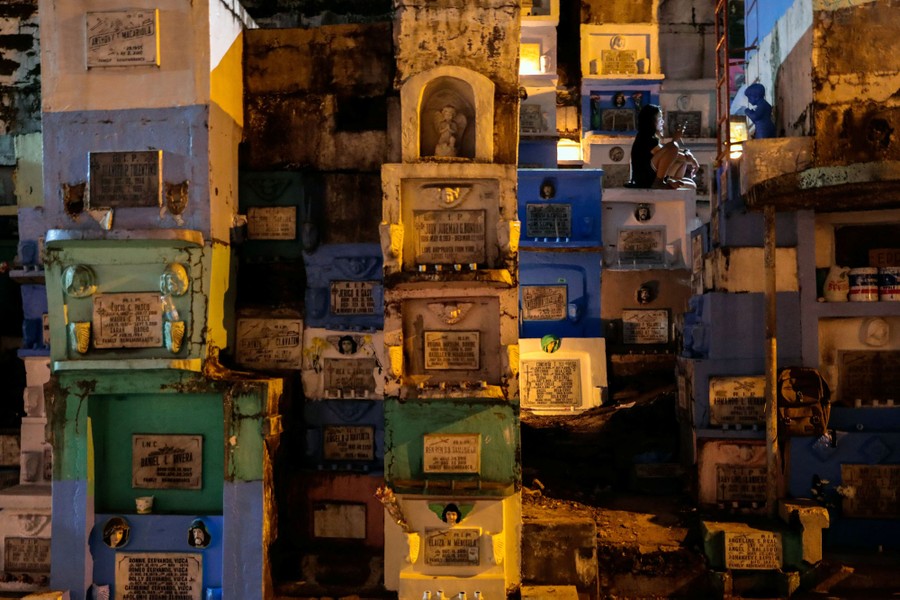 Read moreGirls hang out on top of apartment-style graves as Filipinos begin to visit their departed loved ones ahead of All Saints Day in a public cemetery in Marikina, Metro Manila, Philippines, on October 31, 2019. #