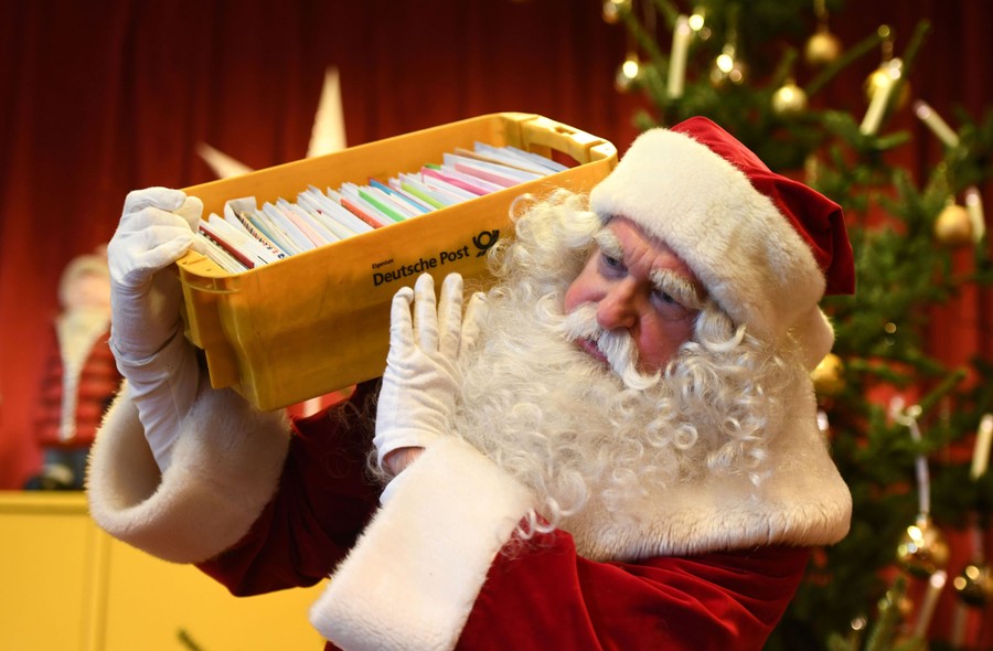 Read moreA man dressed as Santa Claus carries a box full of letters from children from all over the world during his first appearance of the year at the German Christmas post office in Himmelpfort, Germany, on November 14, 2019. #