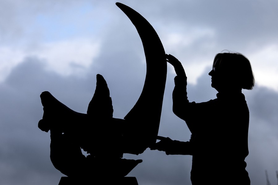 Read moreSilke Lohmann poses besides a wooly rhinoceros skull during a press preview at Summers Place Auctions on November 14, 2019, in Billingshurst, England. The piece is part of a collection that includes taxidermy and dinosaur skeletons, and will go up for sale during the "Evolution Auction" on November 19, 2019. #