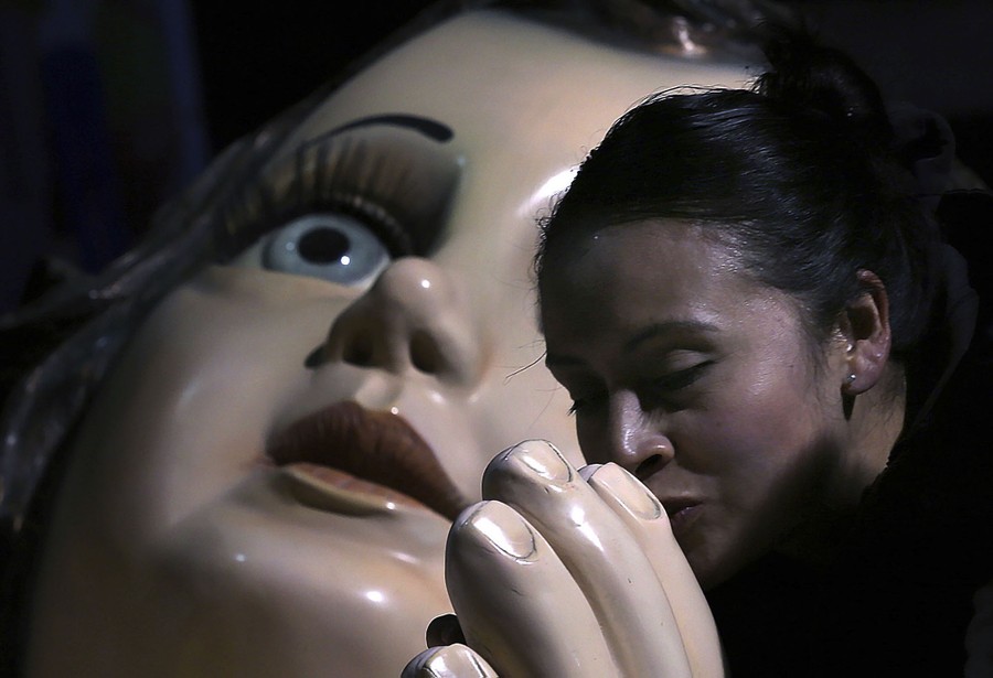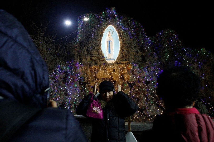 Read moreA woman adjusts her hat as she poses for pictures in front of a Virgin Mary statue at Xishiku Cathedral, a government-sanctioned Catholic church, on Christmas Eve in Beijing, China, on December 24, 2019. #