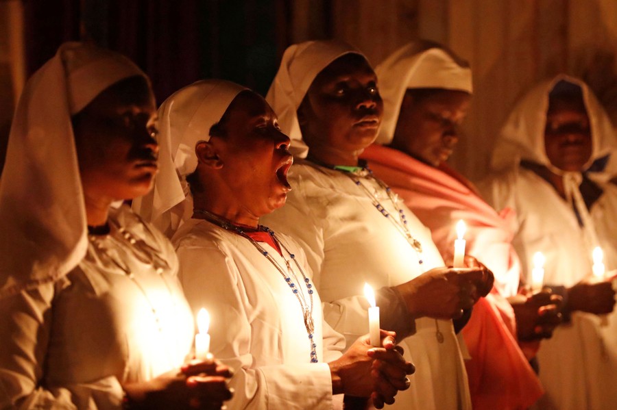Read moreChristian faithful of the Legio Maria of African Church Mission attend the Christmas Eve Vigil Mass in their church in the Fort Jesus area of Nairobi, Kenya, on December 25, 2019. #