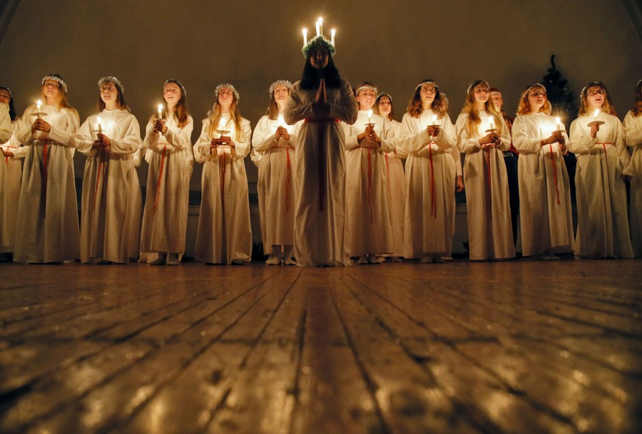 Read moreYoung women sing carols as they hold candles to celebrate Saint Lucia's Day in the Evangelical Lutheran Church of Saint Katarina, in St. Petersburg, Russia, on December 13, 2019. #