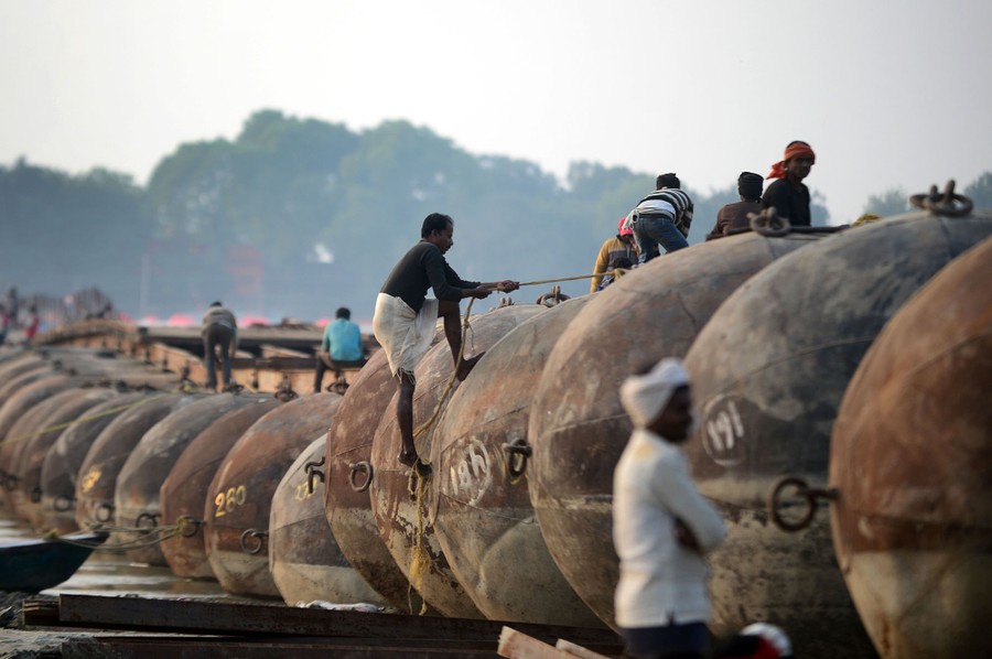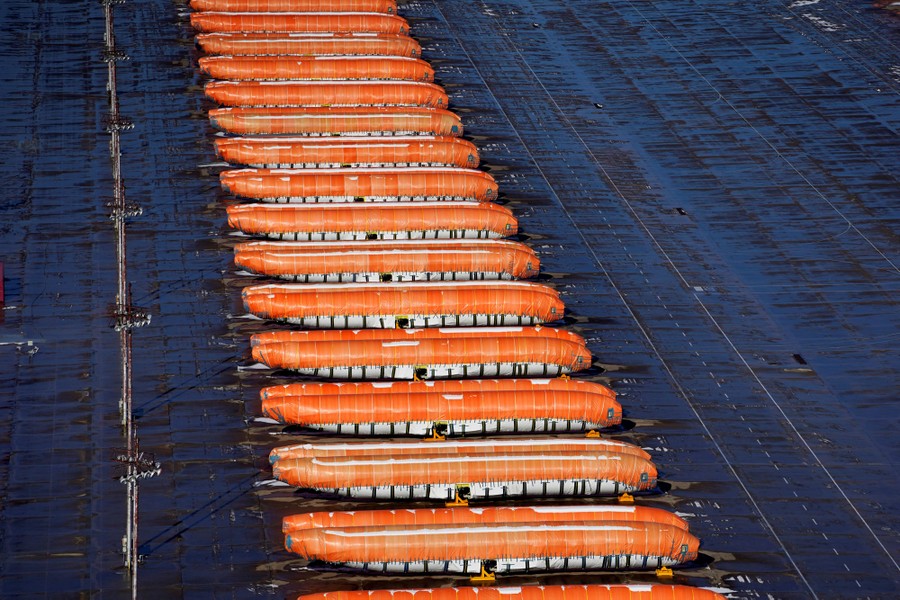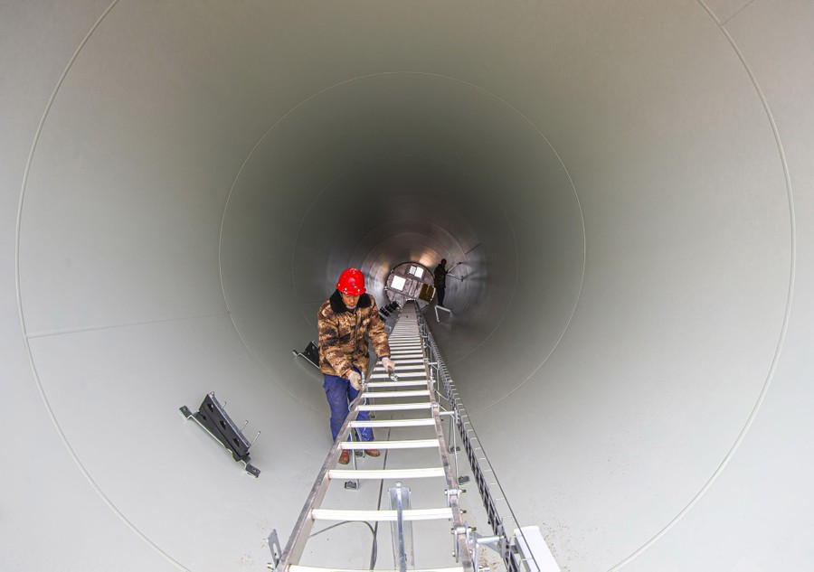 Read moreWorkers are photographed during construction of a wind farm, part of a poverty-alleviation project, in Sihong County, Jiangsu province, China, as it enters the tower-hoisting stage on December 18, 2019. #