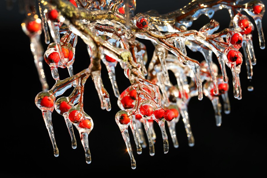 Read moreIcicles hang from frozen berries as a winter storm brings havoc to New Jersey. Ice caused power outages and downed trees throughout the area of West Orange, New Jersey, on December 18, 2019. #