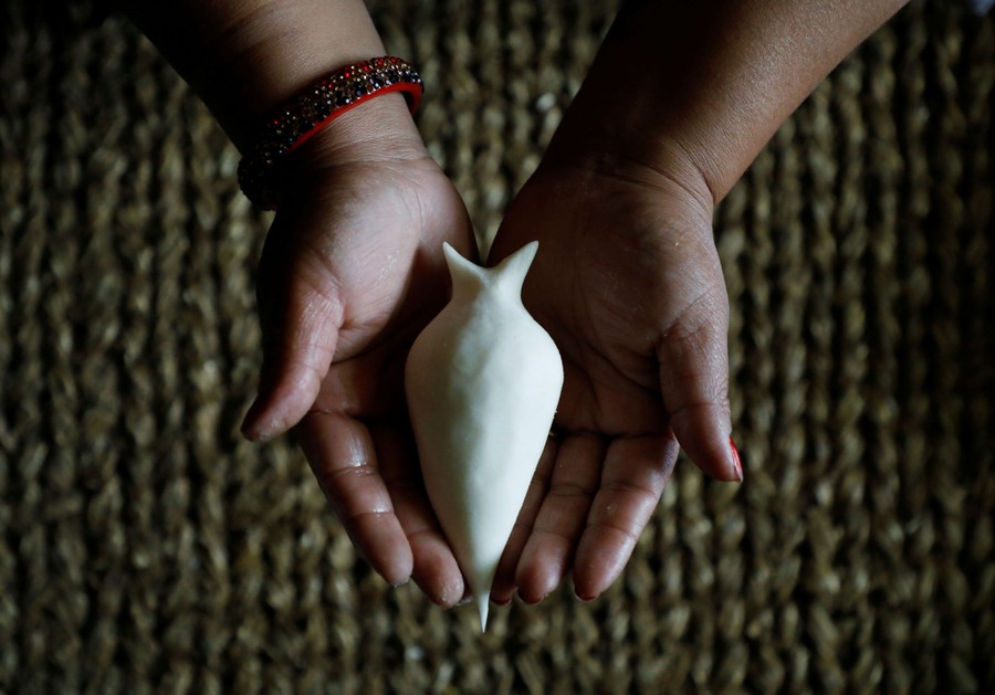 Read moreA woman shows yamari, also called yomari, a confection of rice flour, during the Yamari Puni festival in Kathmandu, Nepal, on December 12, 2019. The name Yamari Puni originates from Newari words, ya meaning "like," mari meaning "delicacy," and puni meaning "full moon." People from the Newar community celebrate this festival once a year during the full moon by performing traditional songs, dancing, and preparing the yamari, which are consumed specifically during this day. #