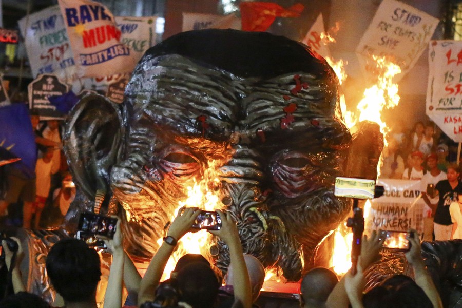 Read moreProtesters burn an effigy of Philippine President Rodrigo Duterte as they mark International Human Rights Day during a rally near the presidential palace in Manila, Philippines, on December 10, 2019. #