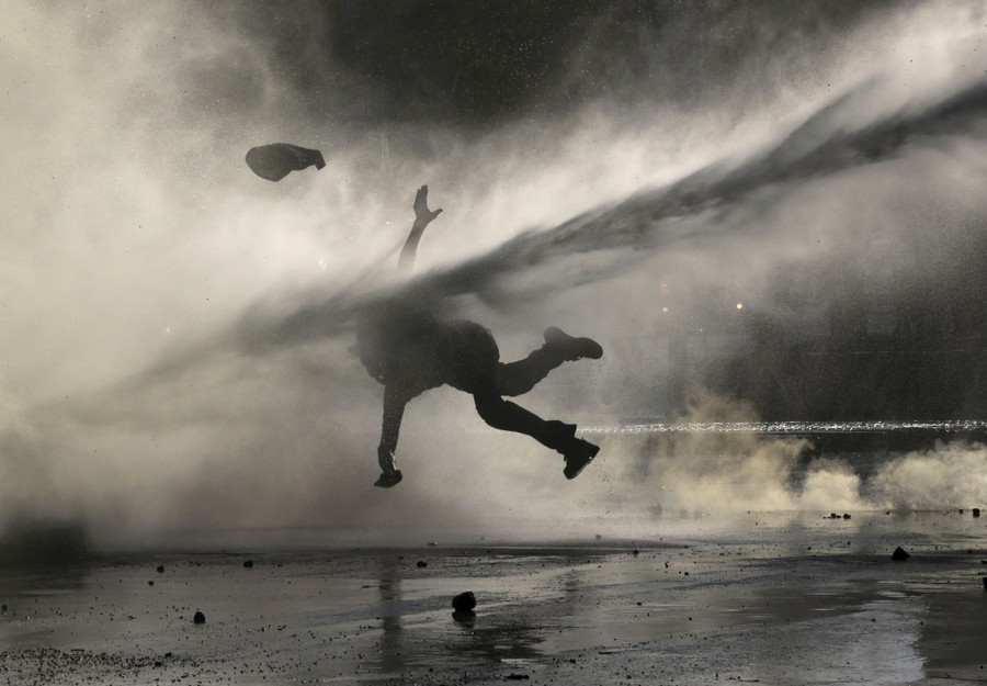 Read moreAn anti-government demonstrator is sprayed by a police water cannon during a protest in Santiago, Chile, on December 9, 2019. Student protests have become a nationwide call for socioeconomic equality and better social services, so far forcing Chilean President Sebastián Piñera to increase benefits for the poor and disadvantaged and to start a process of constitutional reform. #