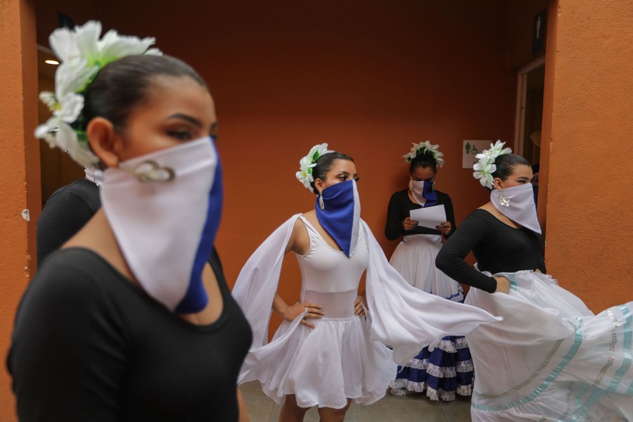 Read moreDancers, with bandanas depicting Nicaraguan national flags on their face, prepare to take part in the 71st International Celebration of Human Rights in Managua on December 10, 2019. #